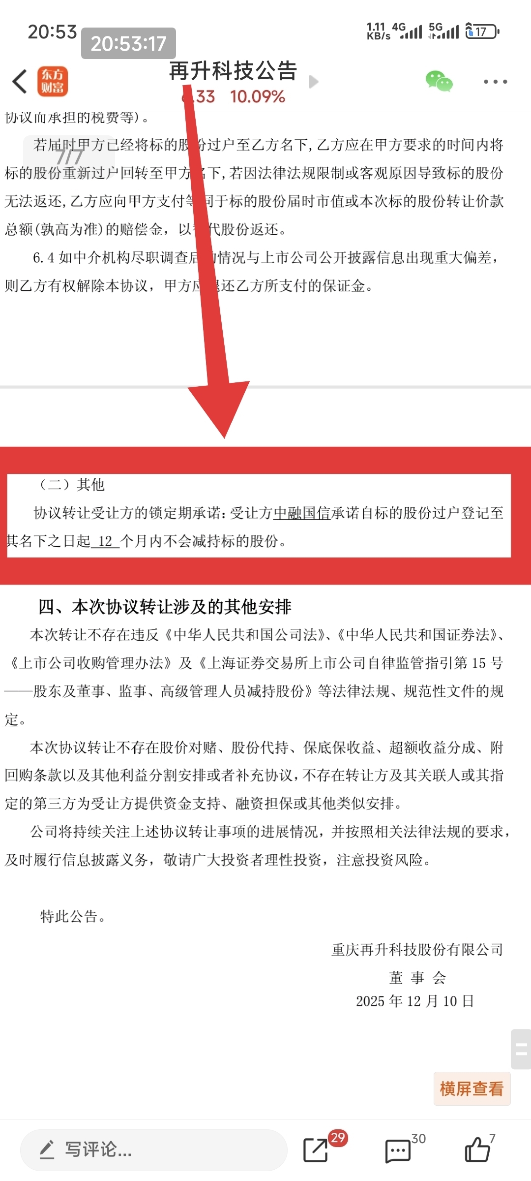 股份受让方承诺12个月内不减持公司股份。市场上就减少了6%的流通股。明天一字涨停