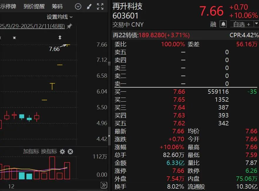 商业航天概念爆发,其中再升科技(603601)走出4连板。电网设备、光伏、储能等板块拉升,通光线缆“20cm”涨停。