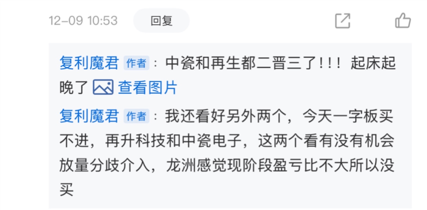 $再升科技(SH603601)$ $中瓷电子(SZ003031)$ 再生科技,看好也买不进啊,有没有喜欢打板的老哥分享分享经验,好多次都是只能看不能吃