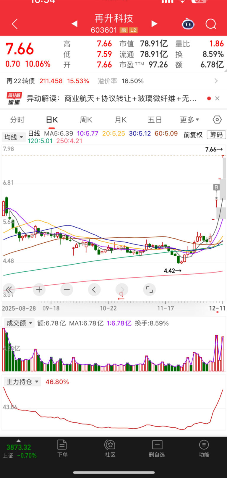 $再升科技(SH603601)$ 今天想加仓了 回来犹豫了 可惜了 我认为这个票要破7板魔咒