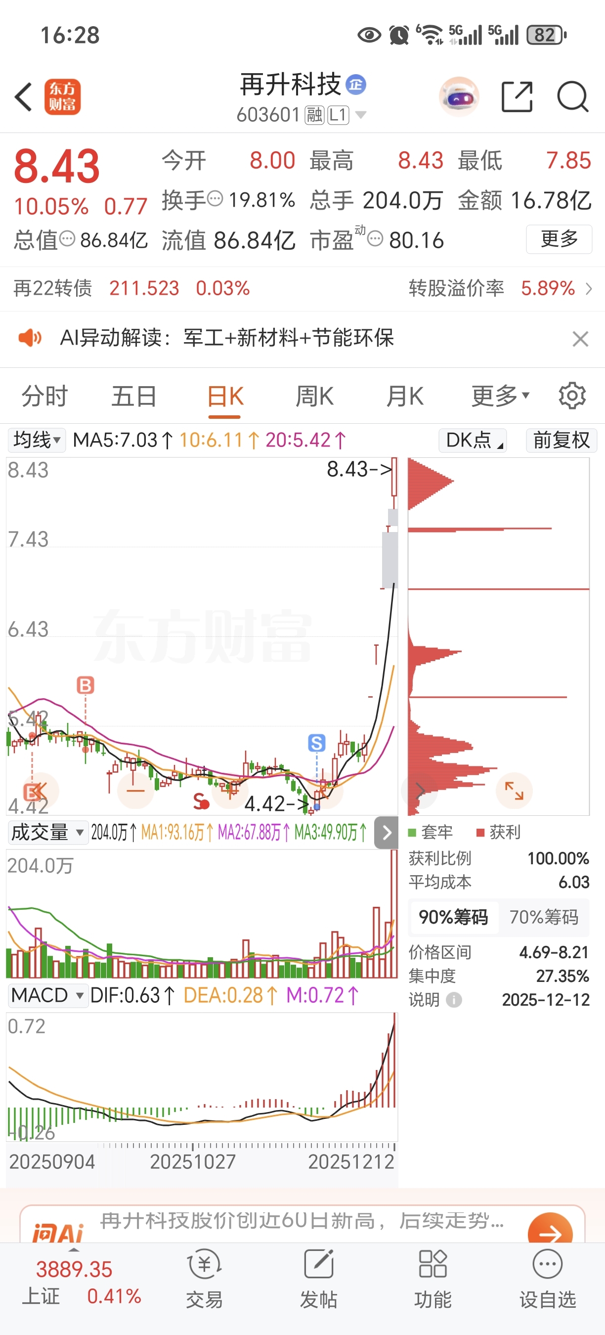 $再升科技(SH603601)$ 请车上的都对我进行感恩和祝福!请没吃上的也平衡一下