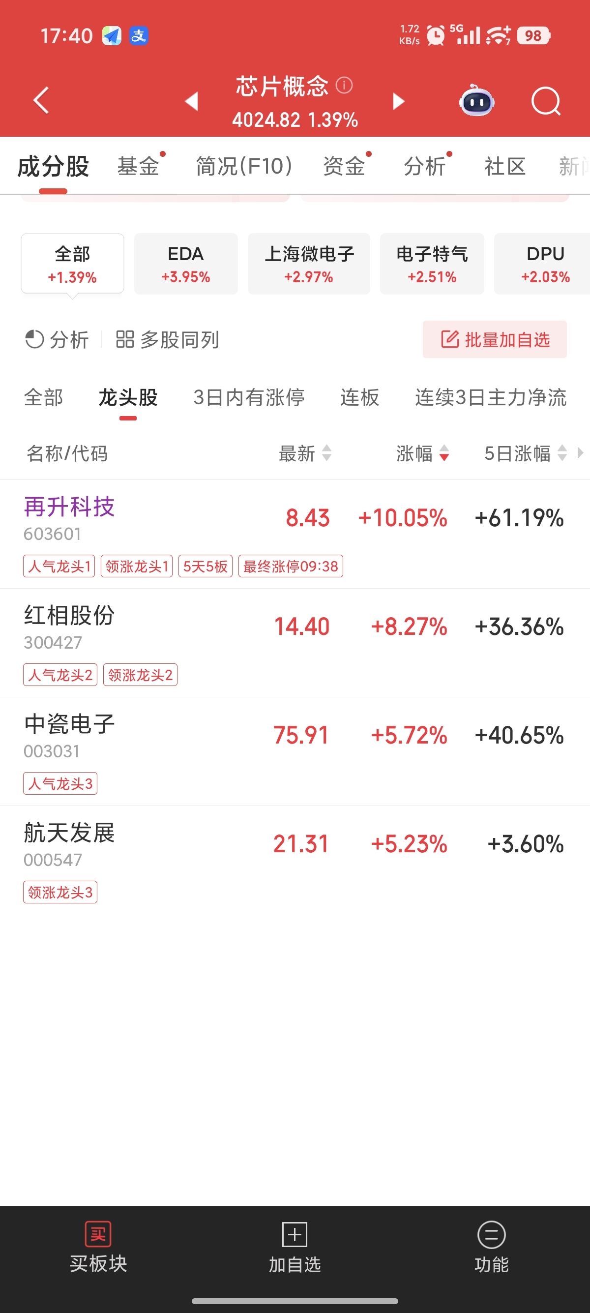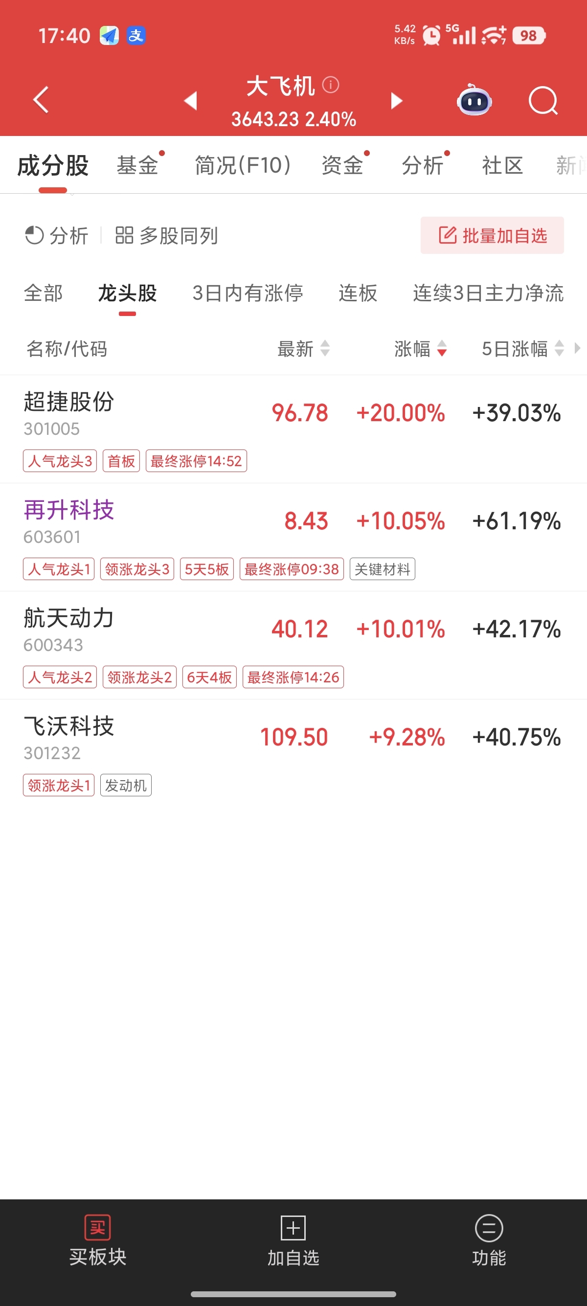 这周的五个板是商业航天的,下周的五个板是芯片的