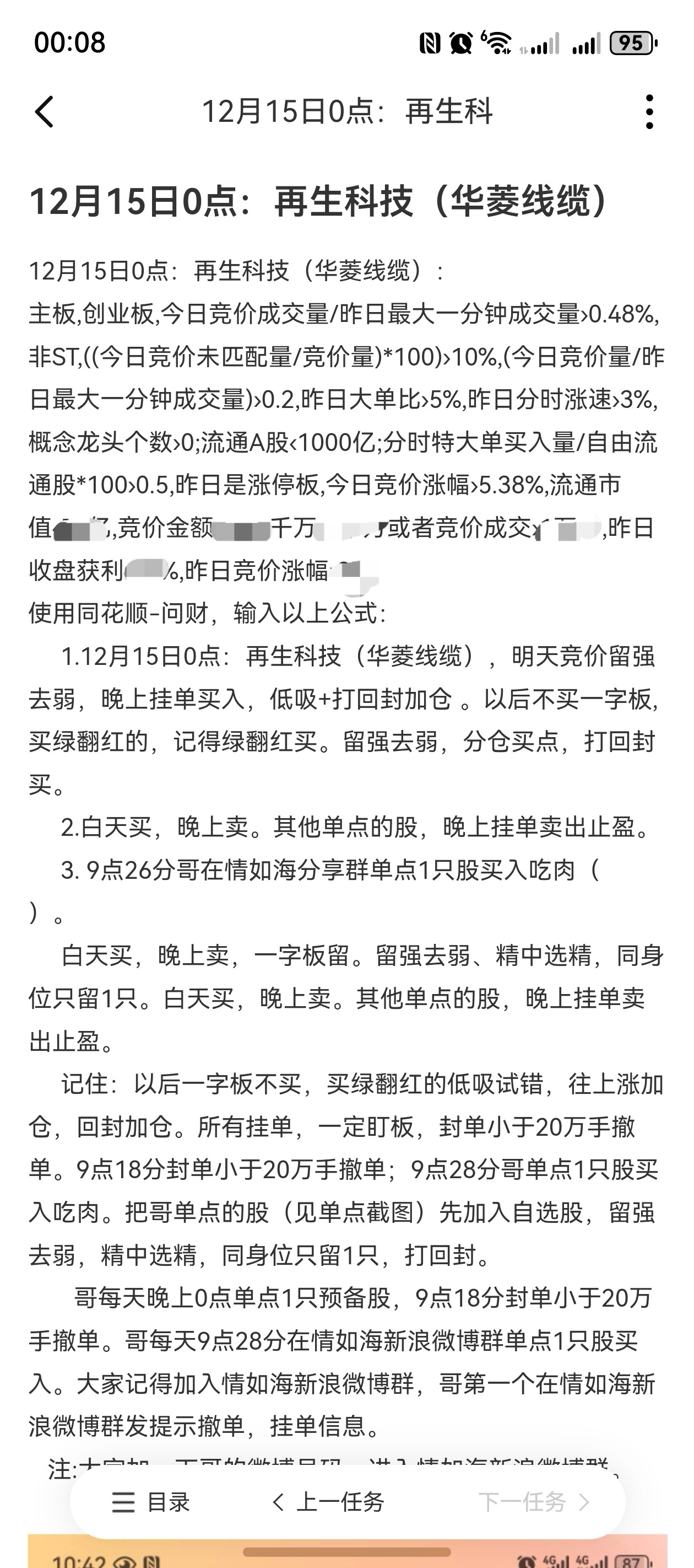 1天抓2只涨停股,不要贪心,有肉吃就好。12月15日0点:1.再升科技(2.华菱