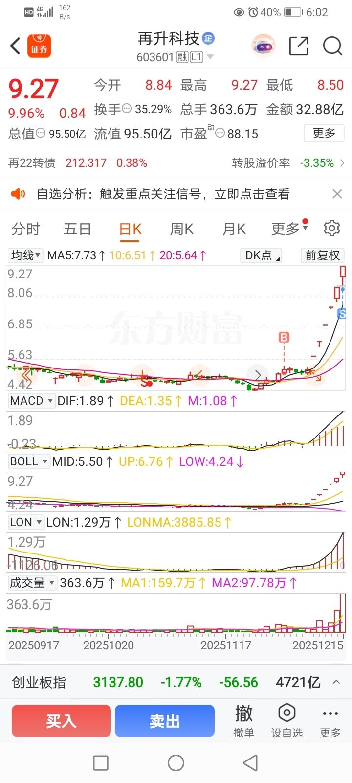 $再升科技(SH603601)$ 这票吃了6个板80多个点的利润。今天不反复炸板,不及预期。先走了落袋为安吧。