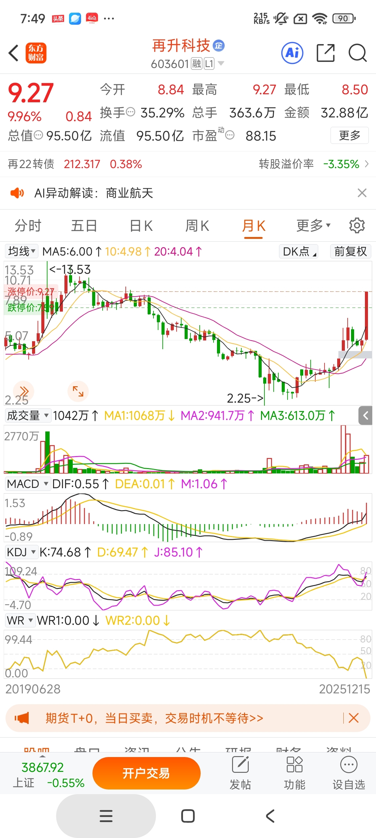 一举破前高13.53,复制去年海能达,再升科技,再升再升,加油!