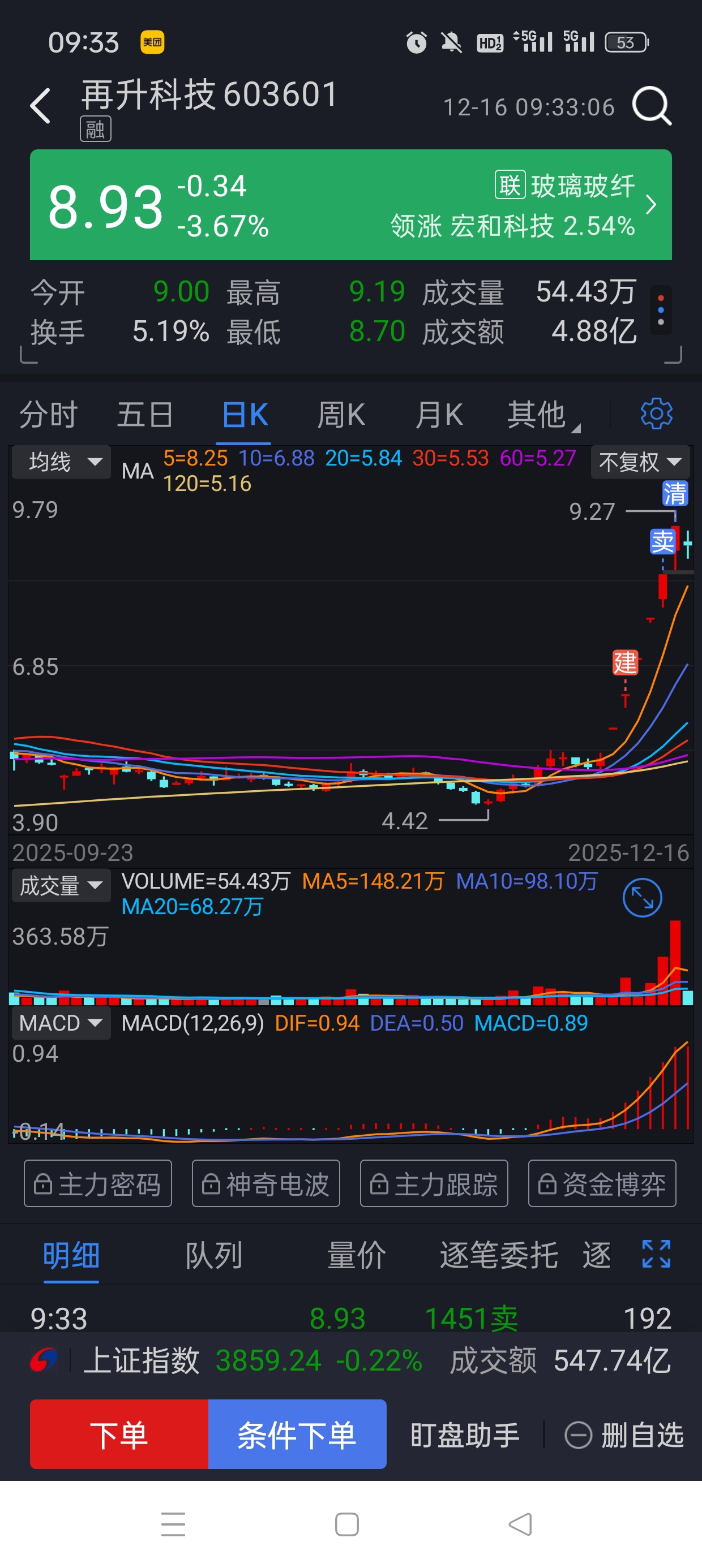 $再升科技(SH603601)$ 昨日封盘太勉强,调整几日再看看入不入