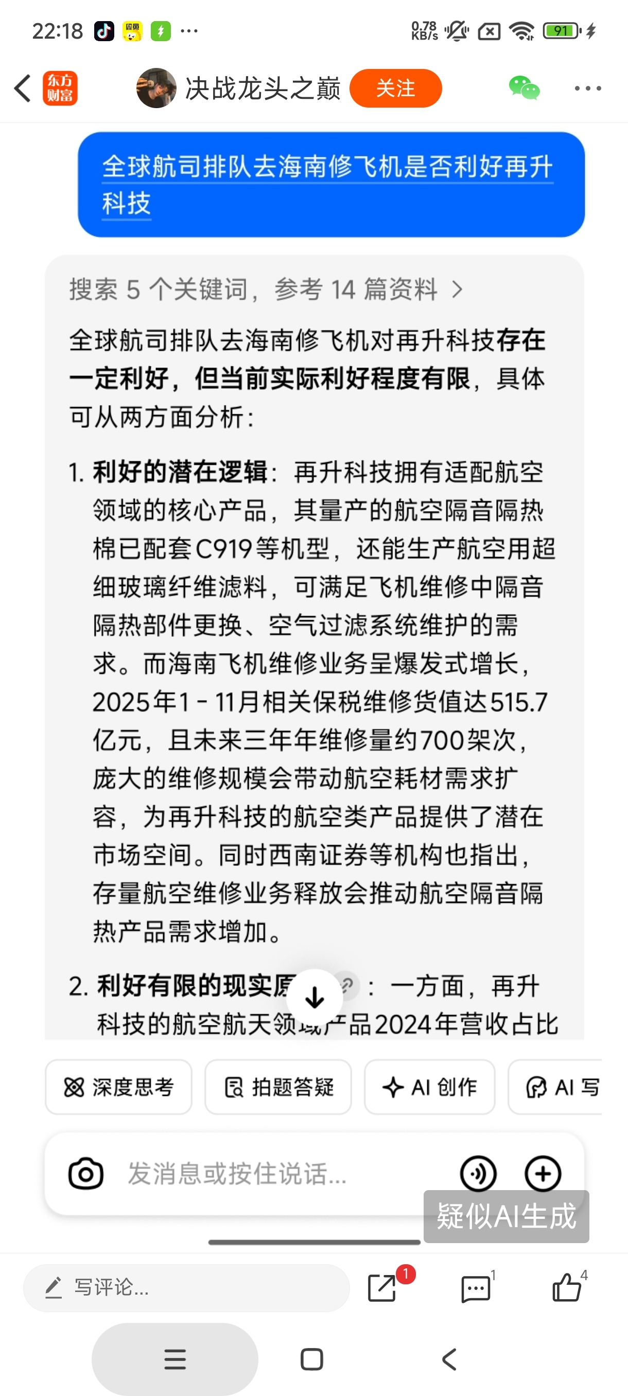 $再升科技(SH603601)$ 海南和上海都有大飞机维修公司,再升科技前景无限啊!