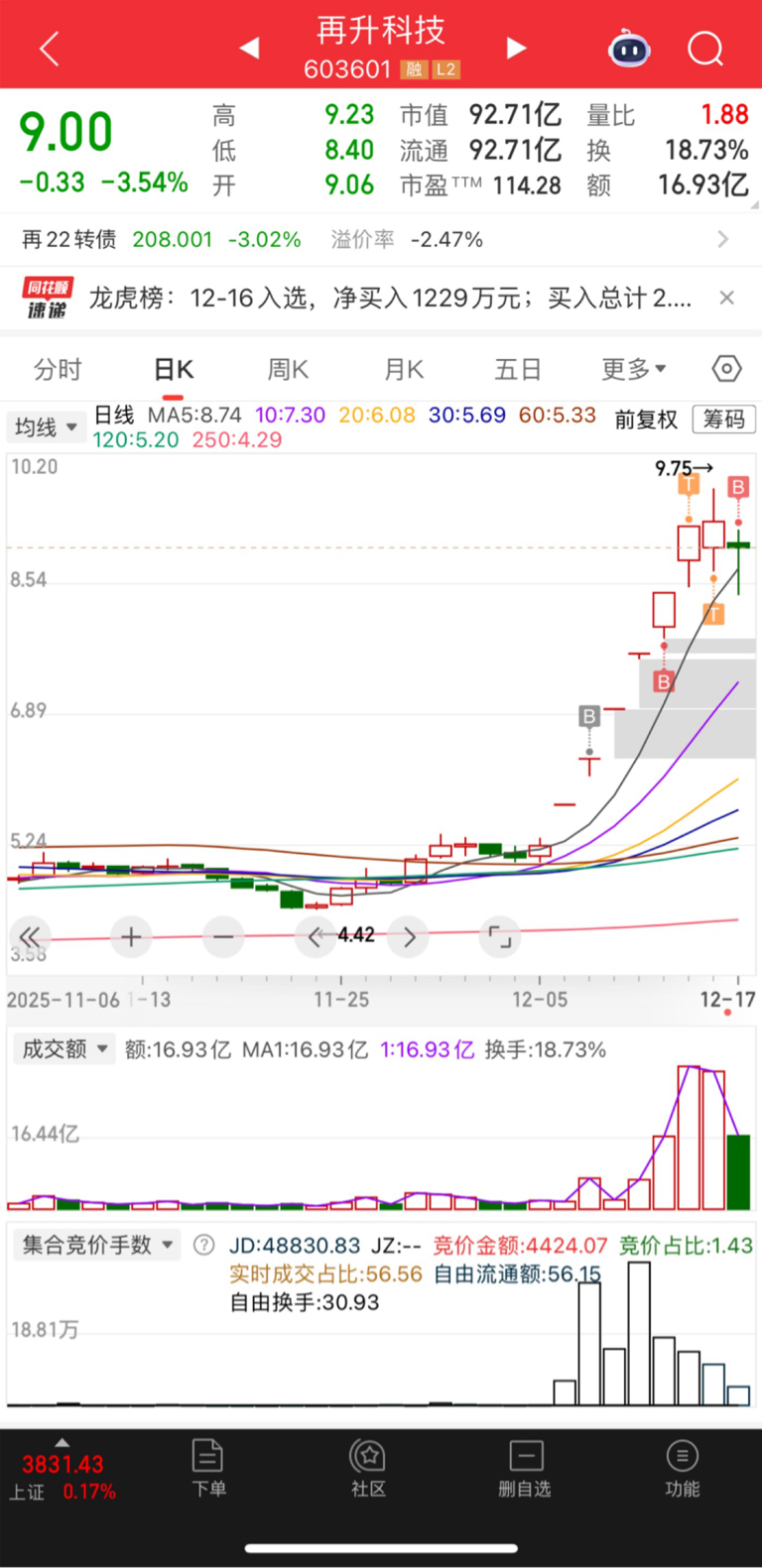 $再升科技(SH603601)$ 不知道你们慌不慌 反正我是一点不慌。但是这个票风险也不小没有利润的看看得了 我这利润比较厚