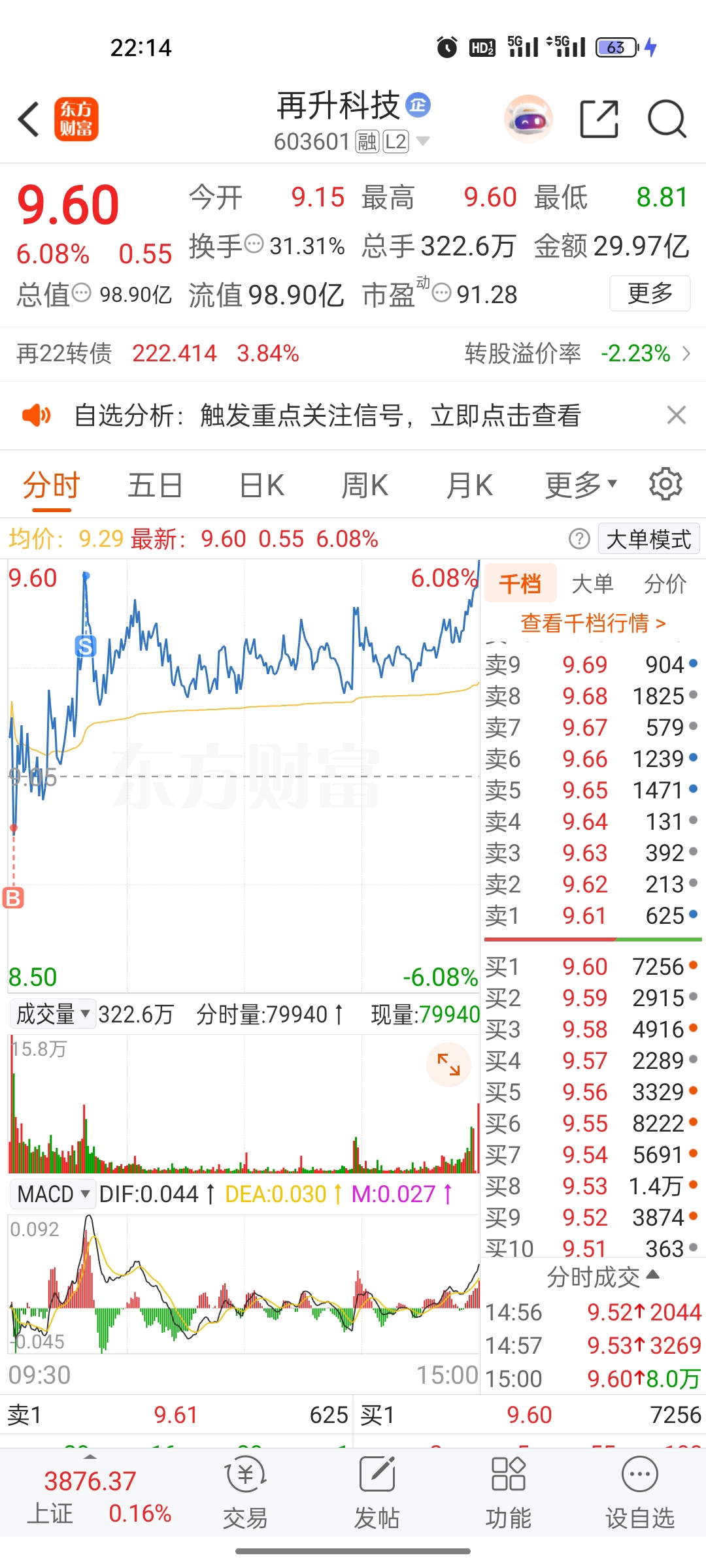 $再升科技(SH603601)$ 今天尾盘拉升吸引跟风盘,然后有集合竞价出货的嫌疑