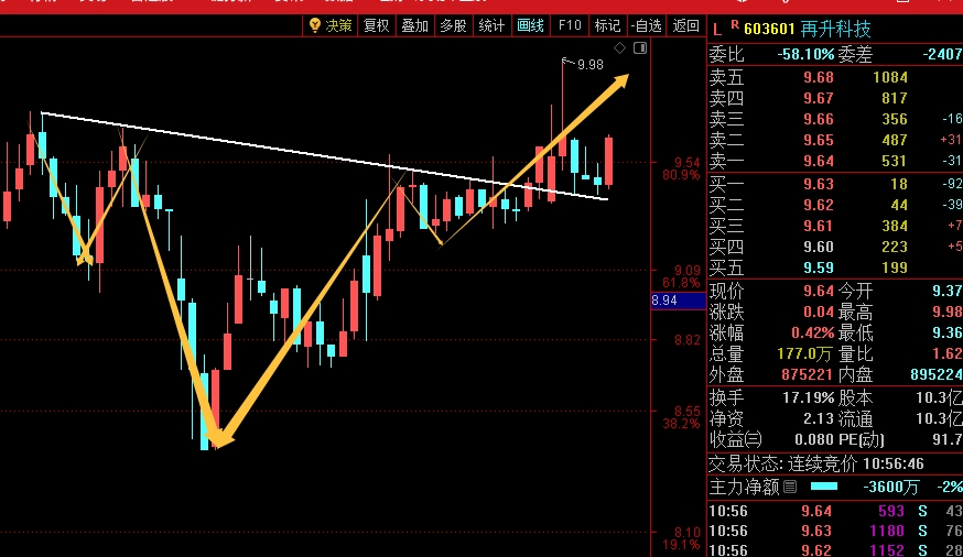 $再升科技(SH603601)$ 站稳10.03就有机会