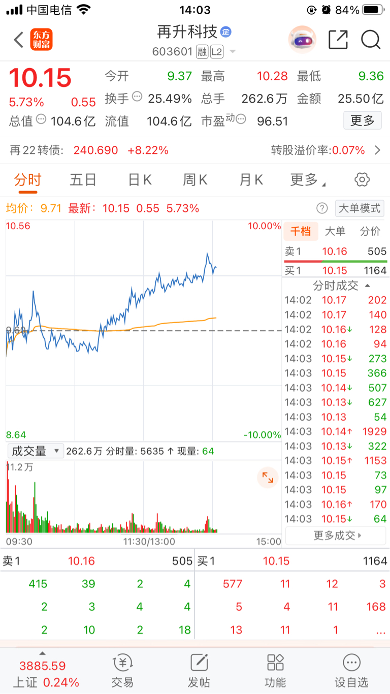 $再升科技(SH603601)$ 今天追进来不少增量资金,下周一大概率还会有溢价。仅供参考!#炒股日记# #复盘记录# #强势机会# #股市怎么看#