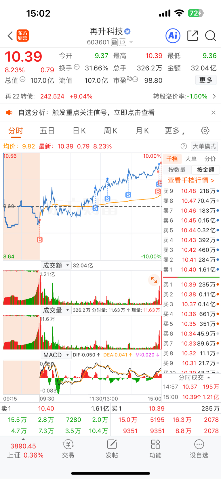 2天收获20个点,操碎了心,尾盘又是加又是减的,看到1.6亿大佬压在10.4元,