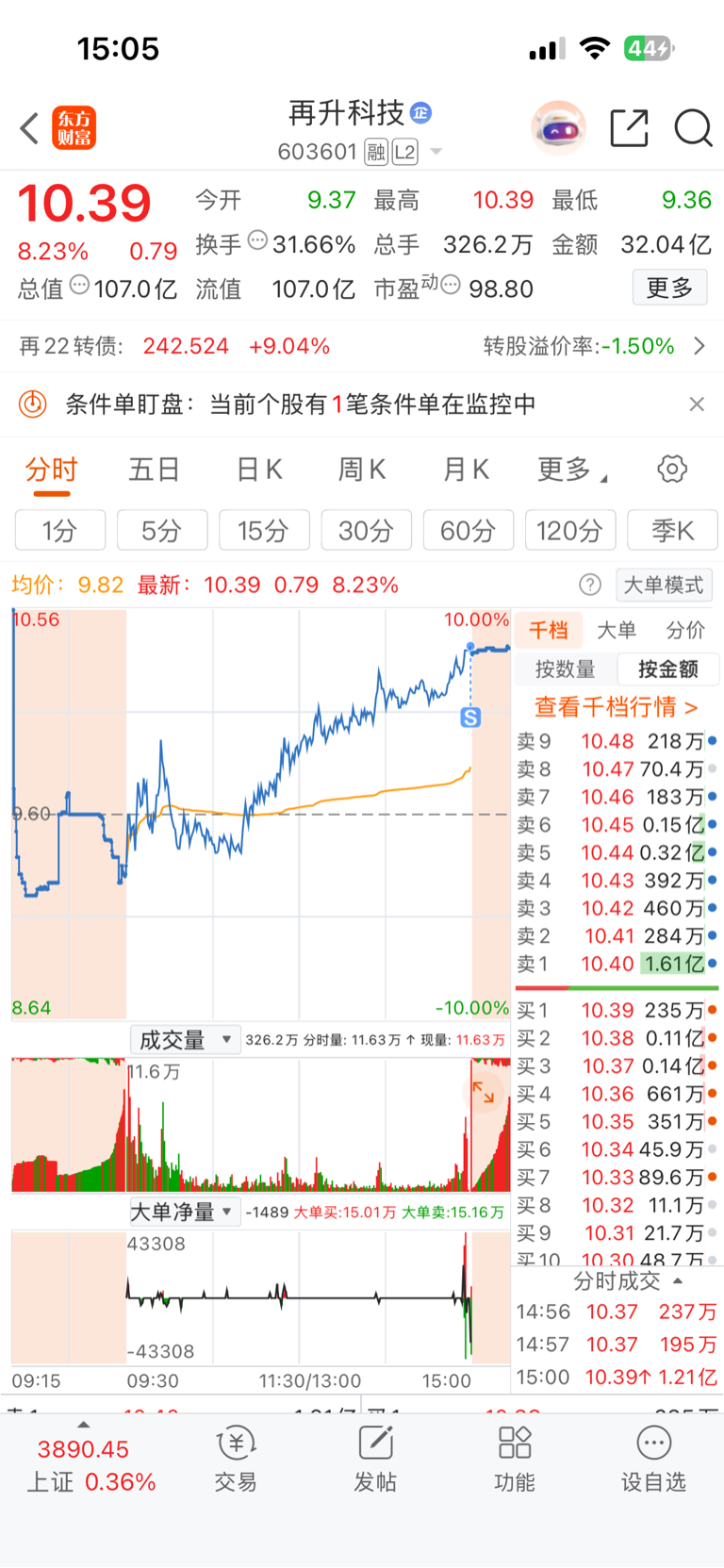 $再升科技(SH603601)$ 担心主力控不住,先走了