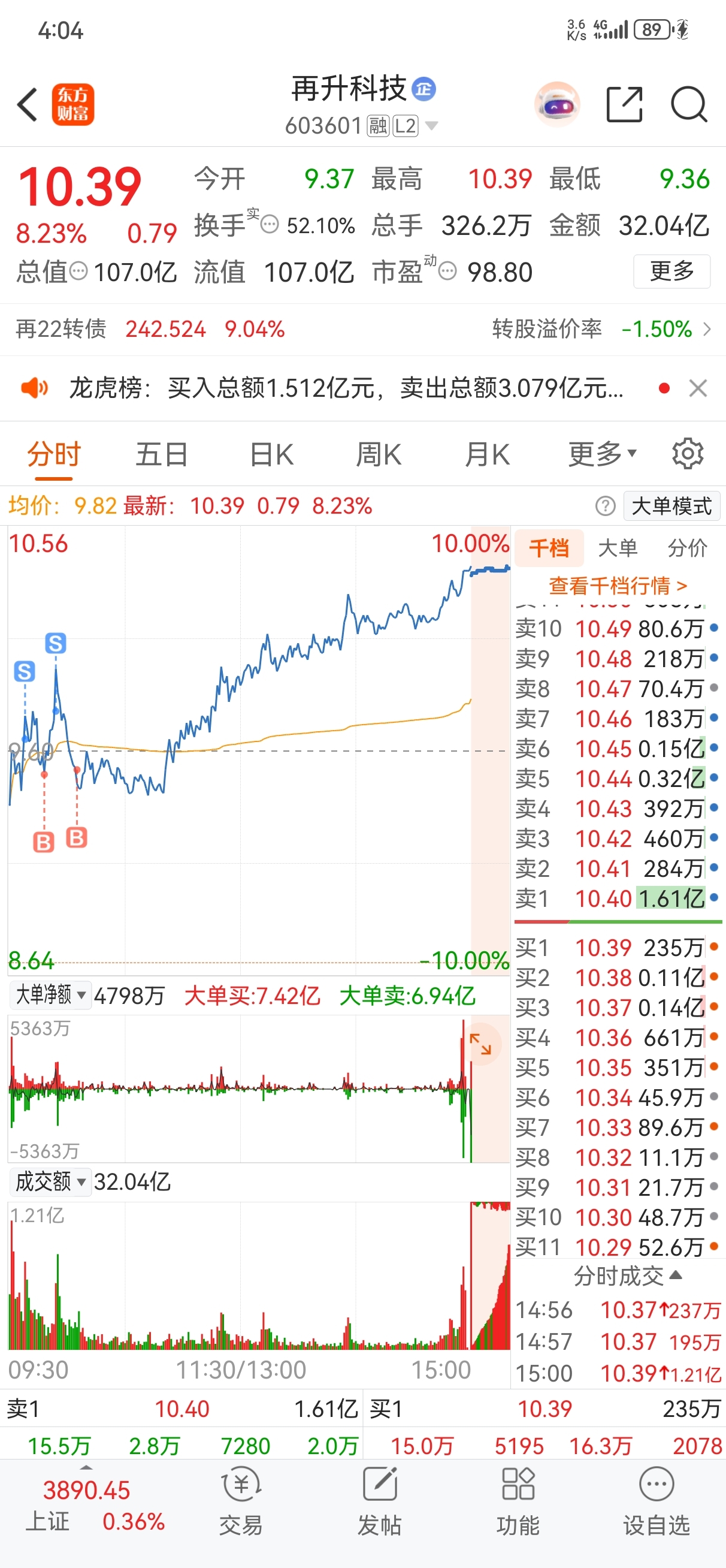 $再升科技(SH603601)$ 做了两次T刚好10个点