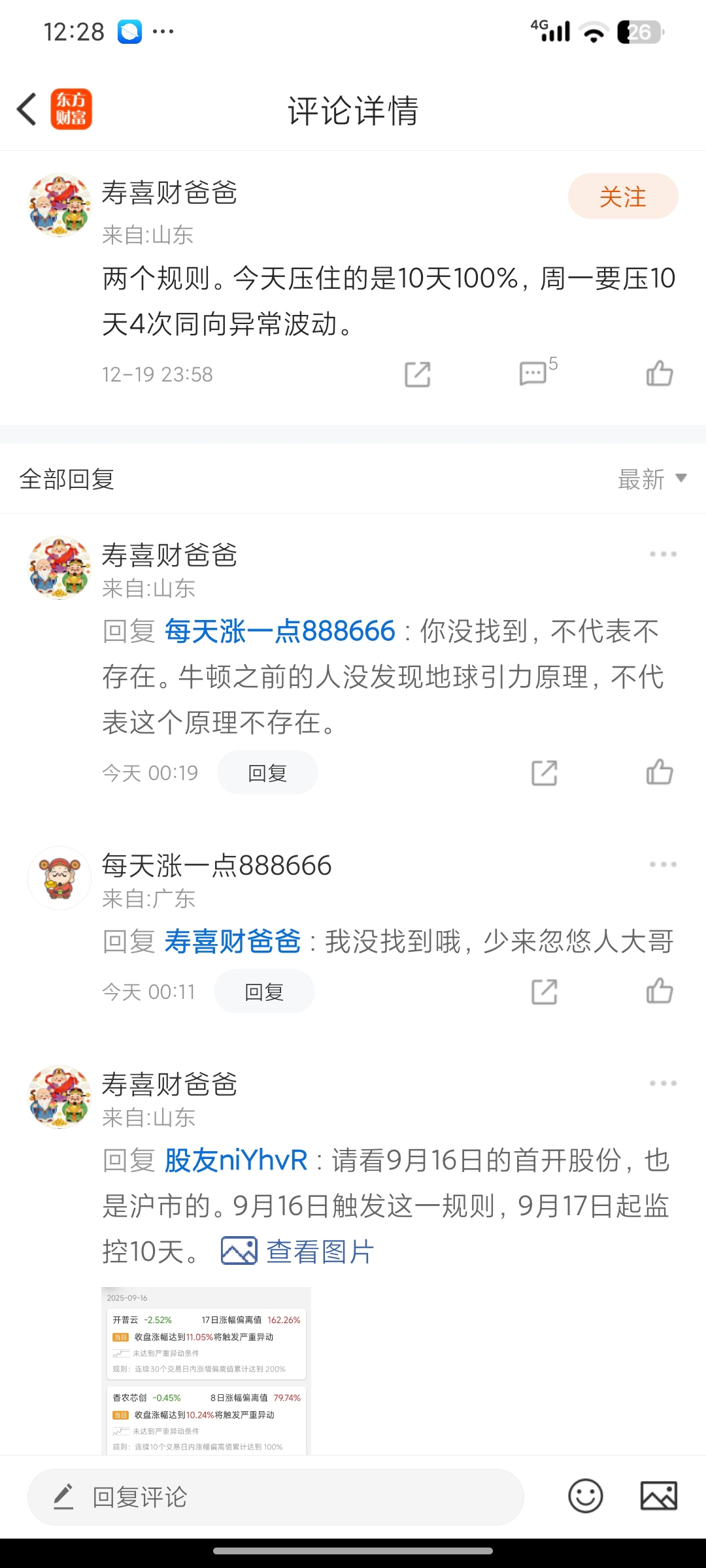 $再升科技(SH603601)$ 看看这个人的嘴脸,还把我拉黑了,首发触发10日同向异动的监管你们找到了吗?我只看到首发9月12号触发了一次10日100%异动