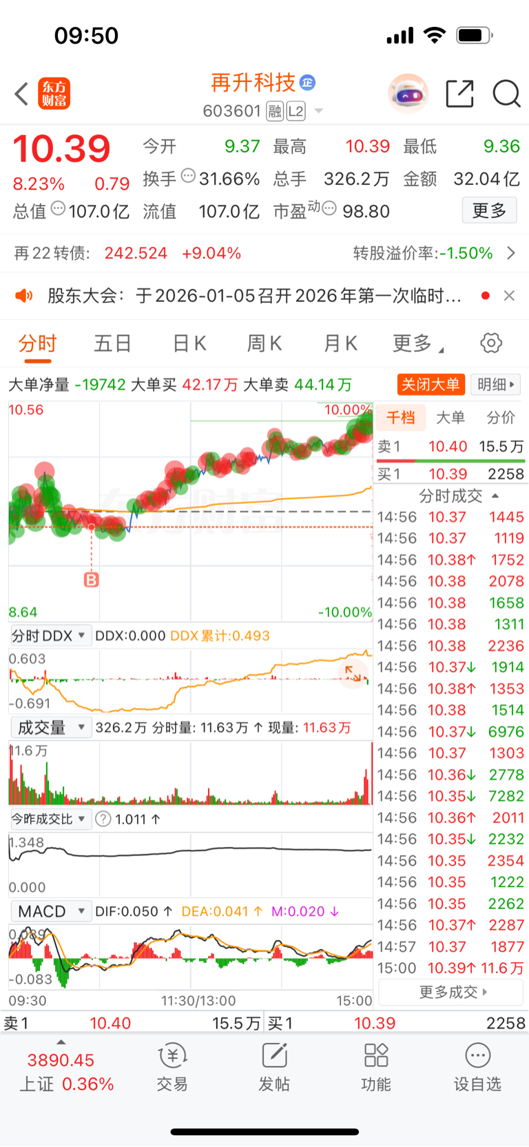 $再升科技(SH603601)$ 虽然在平潭吃了一字断魂刀,但是在再升吃了一个涨停,水下接近两个点来的,好些再升帮我回血,要不平潭能让我崩溃哭