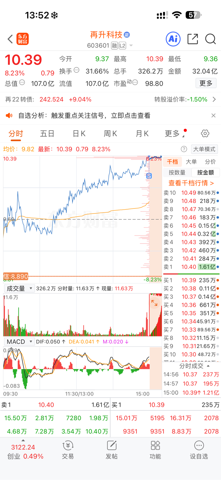 $再升科技(SH603601)$ 尾盘清仓了,周一找机会再买回来