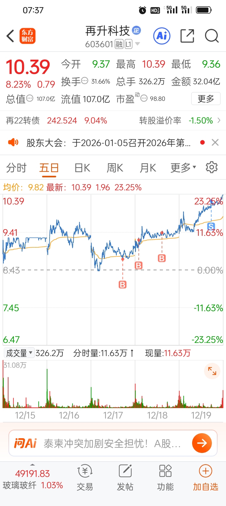 $再升科技(SH603601)$ 15个点已知足。希望一直涨