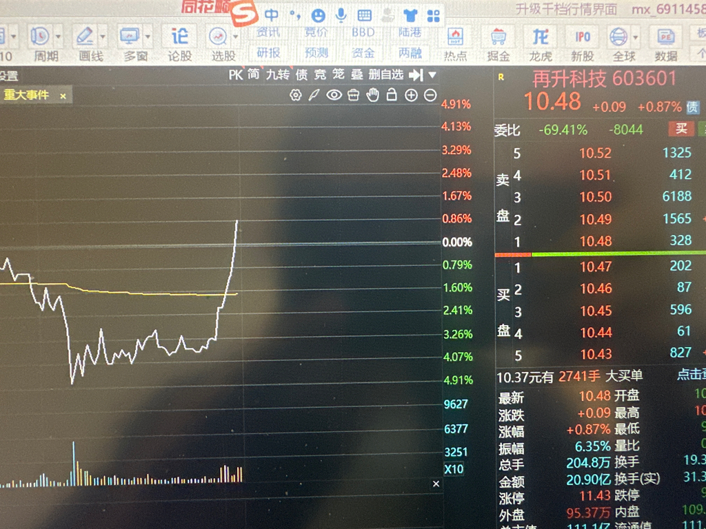 $再升科技(SH603601)$ 这个股性真好,有一次跌停直接拉上去了,现在跌了-5%又有人吃了,继续拉升