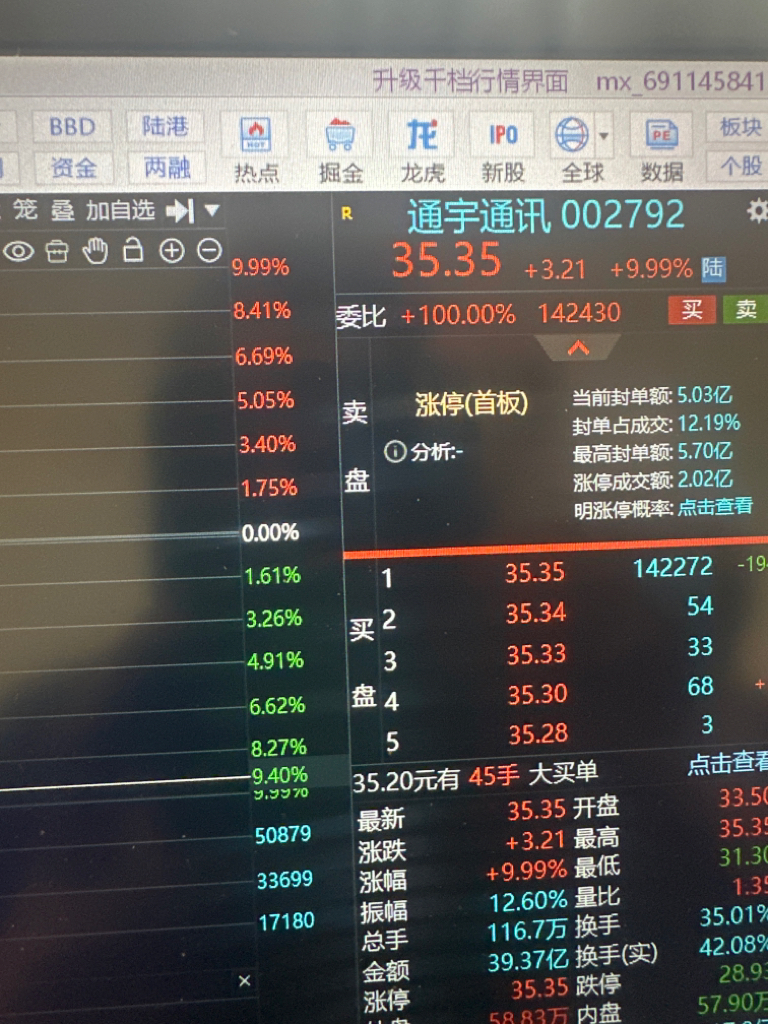 宇通通讯涨停了,再升没有机会再买了-5~0%没有买入哭死