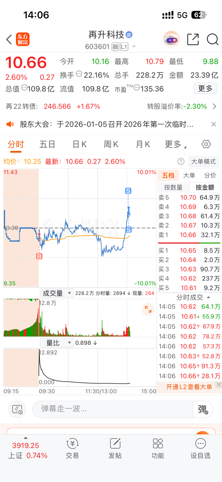 $再升科技(SH603601)$ 主力稳住!我先T一下