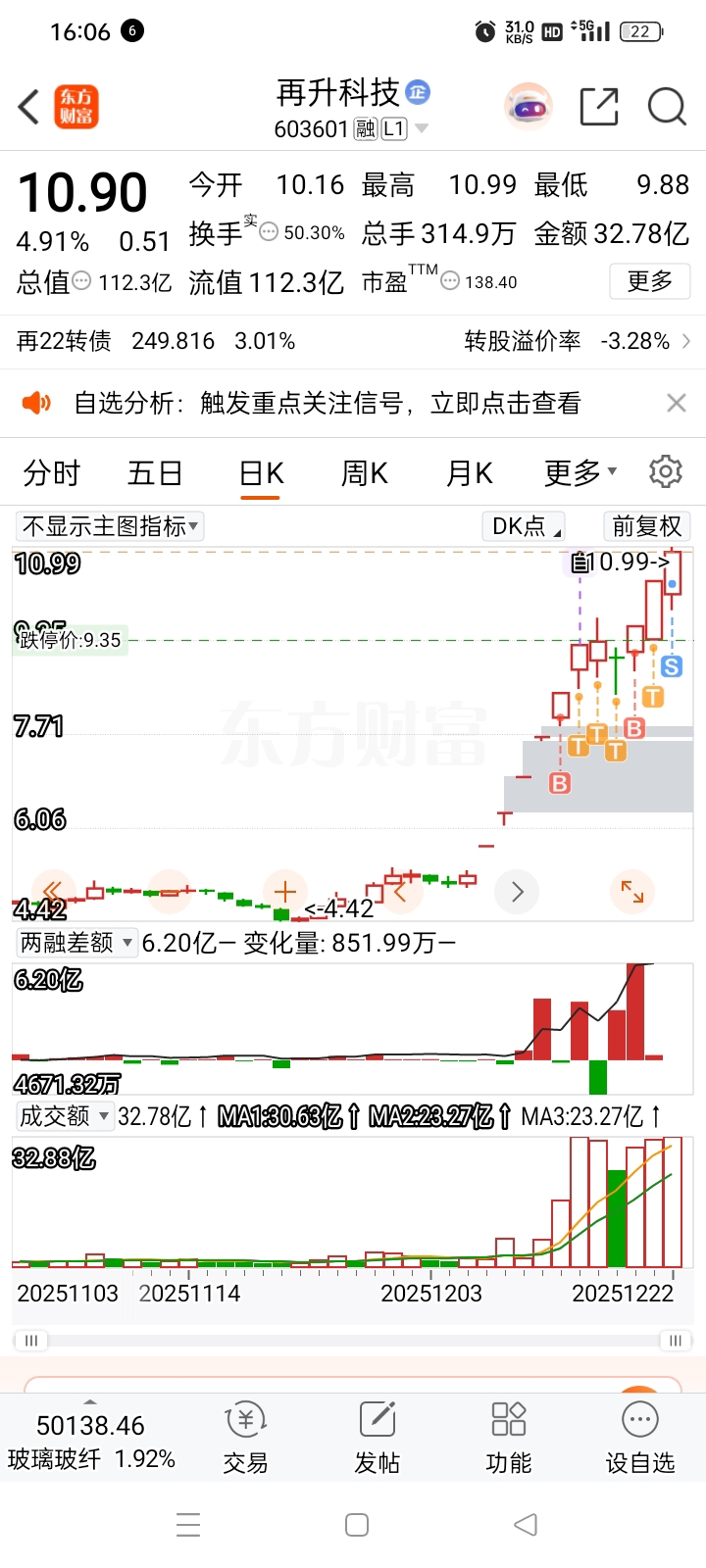 $再升科技(SH603601)$ 好票,这个月从航天发展切换到再升科技,稳稳的收益。再次证明我的模式的可靠性。当买点出来,重仓买进。每个月A股都会出现2个题材的个股,抓住买点,重仓买进,边买边卖,留住收益,才能在股市生存