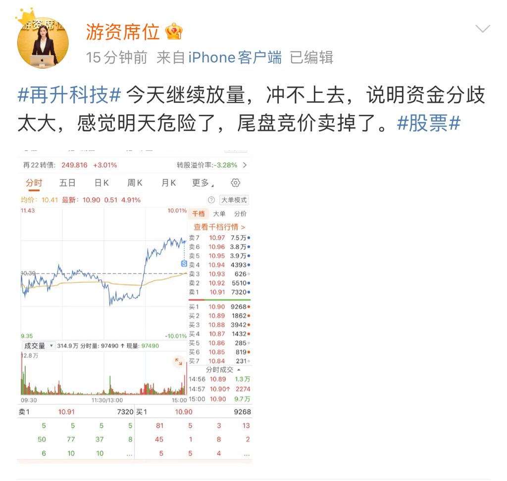 $再升科技(SH603601)$ 分歧太大,卖掉了。#收盘点评# #炒股日记# #复盘记录# #周度策略#