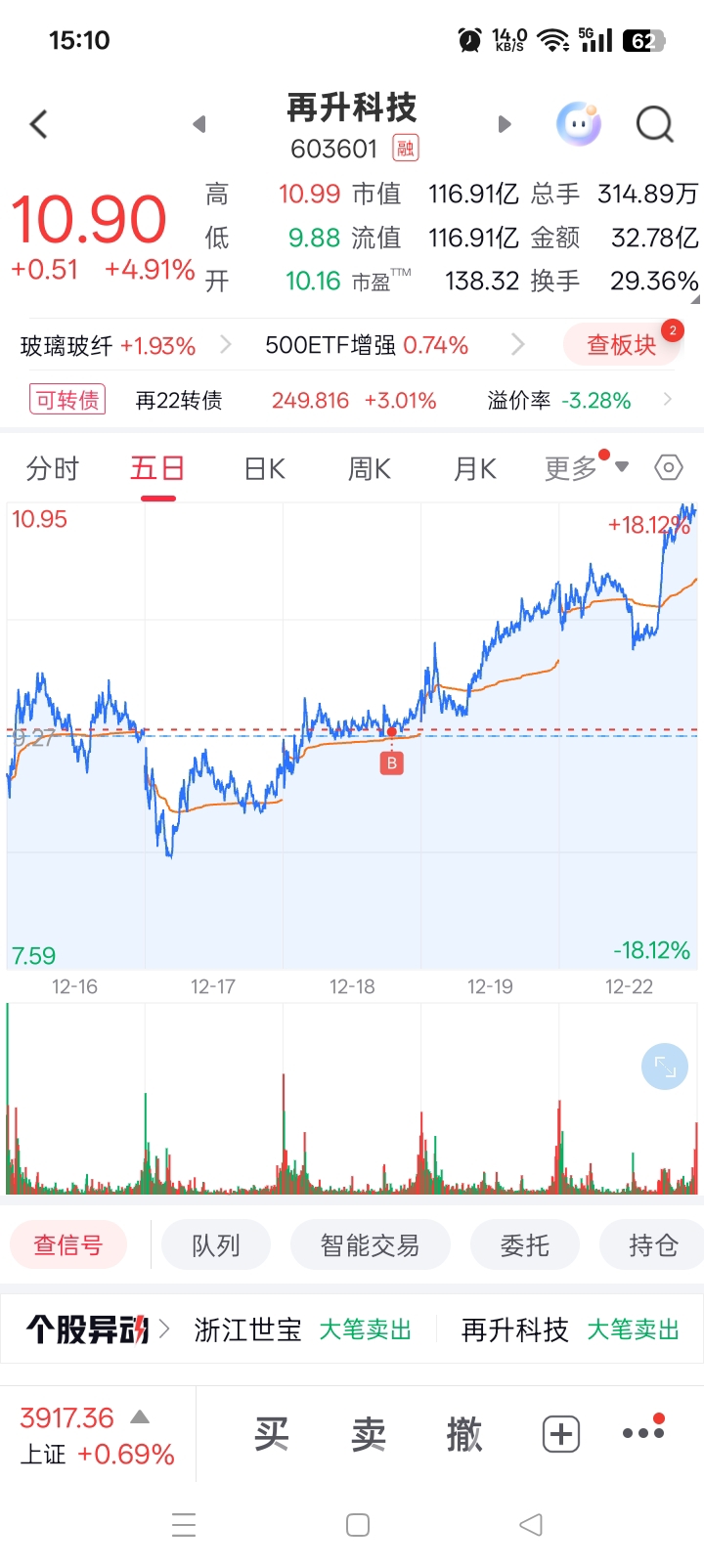 $再升科技(SH603601)$ 明天涨停价11.99多好的数字