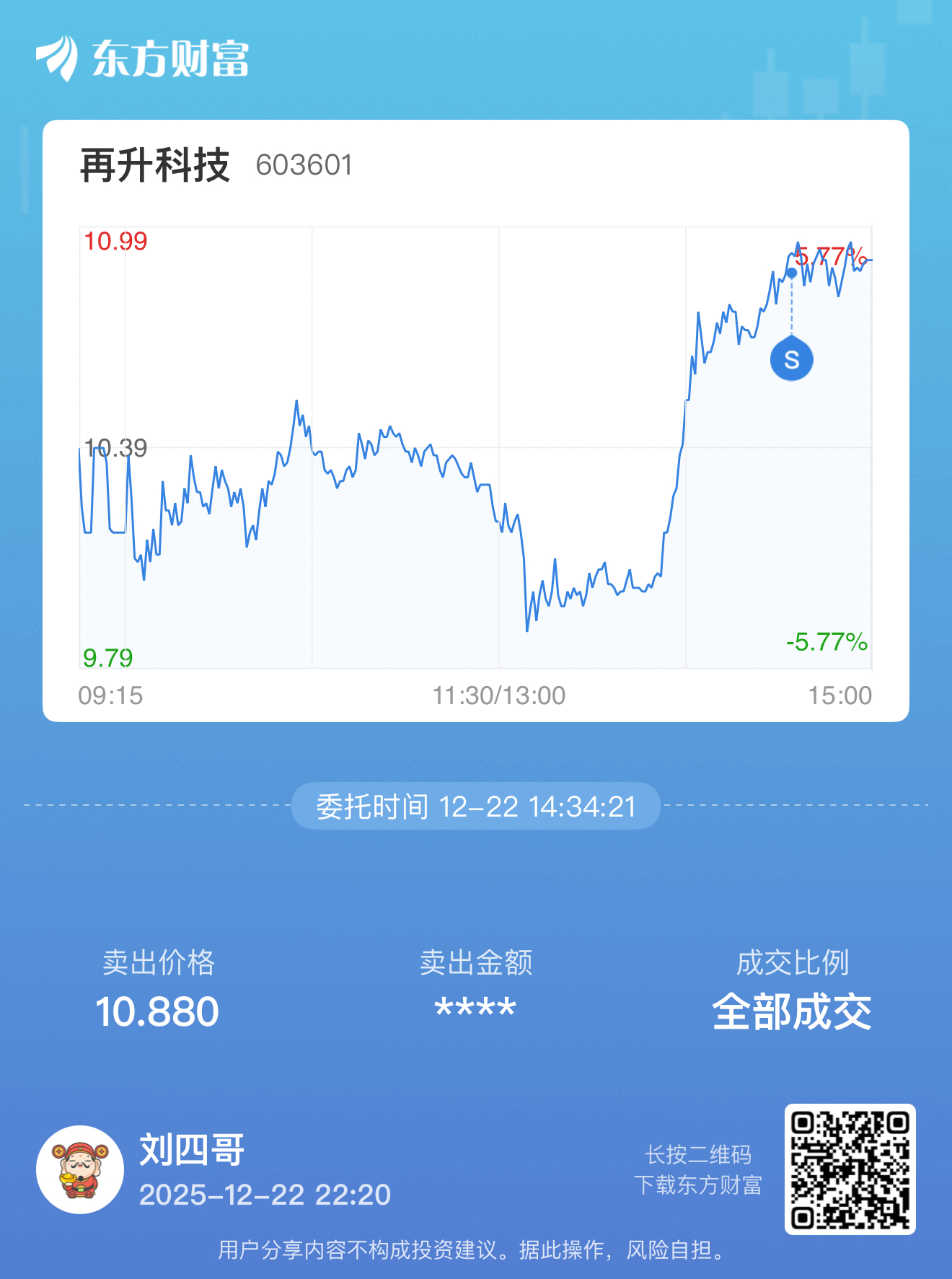 温馨提示: 1.根据《证券法》规定,禁止编造、传播虚假信息或者误导性信息,扰乱证券市场;2.用户在本社区发表的所有资料、言论等仅代表个人观点,与本网站立场无关,不对您构成任何投资建议。用户应基于自己的独立判断,自行决定证券投资并承担相应风险。《东方财富社区管理规定》