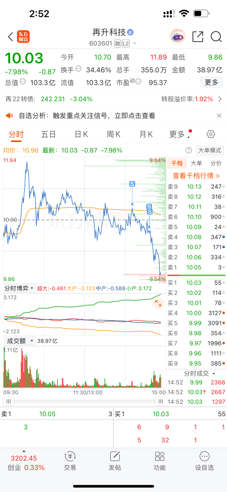 $再升科技(SH603601)$ 尽力了 兄弟们 没办法了 格局一天 从8个点砸到0轴 在回升5个点 就是我的纪律 格局了一天