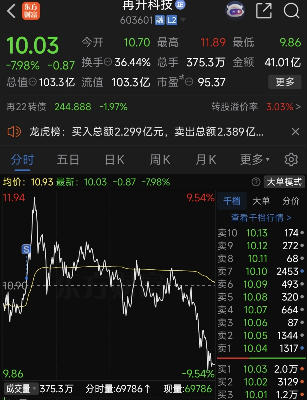 $再升科技(SH603601)$ 早上憋了半天终于等到水上机会赶紧出了,结果卖了两分钟直冲涨停大腿都拍断了,收盘一看不亏就当赚了