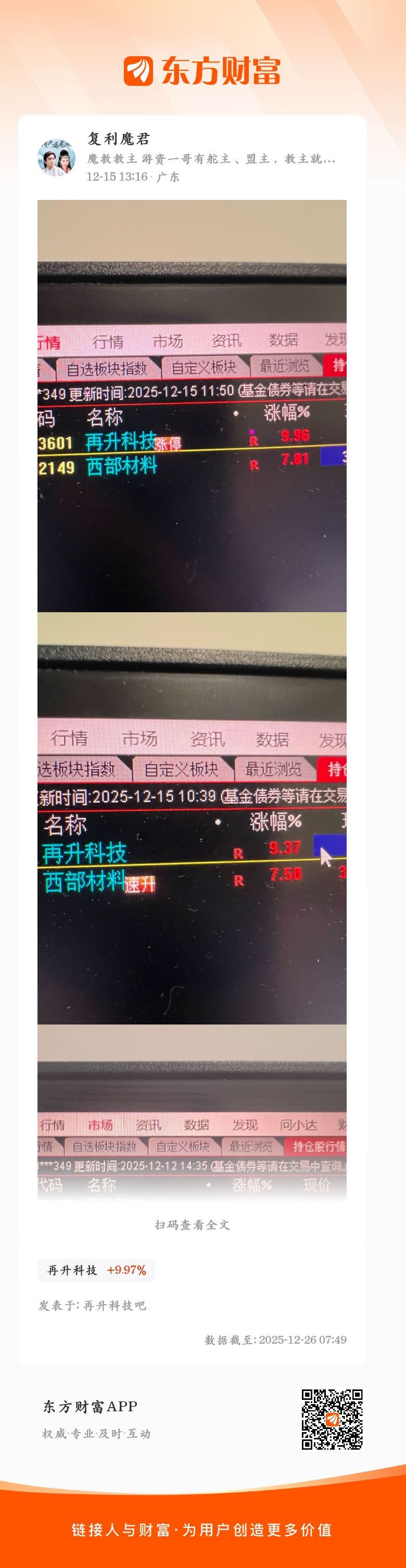 #强势机会# #实盘记录# #炒股日记# $再升科技(SH603601)$ $西部材料(SZ002149)$