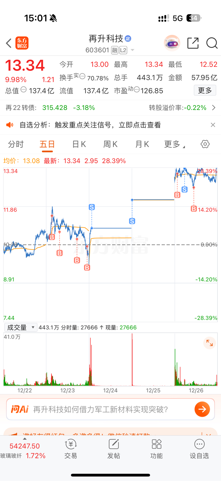 $再升科技(SH603601)$ 实在不行,周一再吐出来