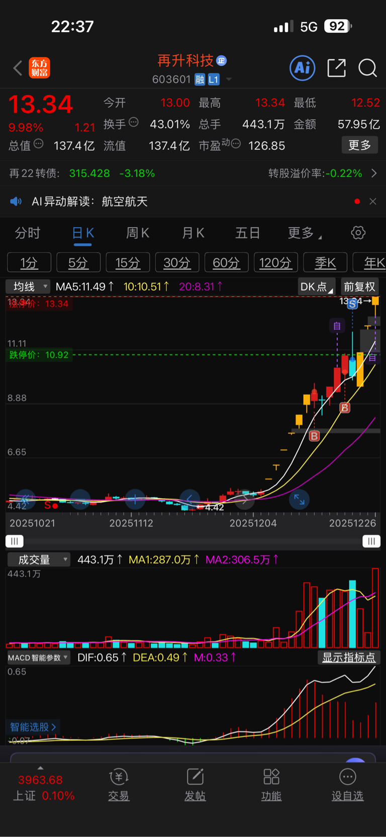 $再升科技(SH603601)$ 虽然把我洗出去了,但是我去了更好的天际