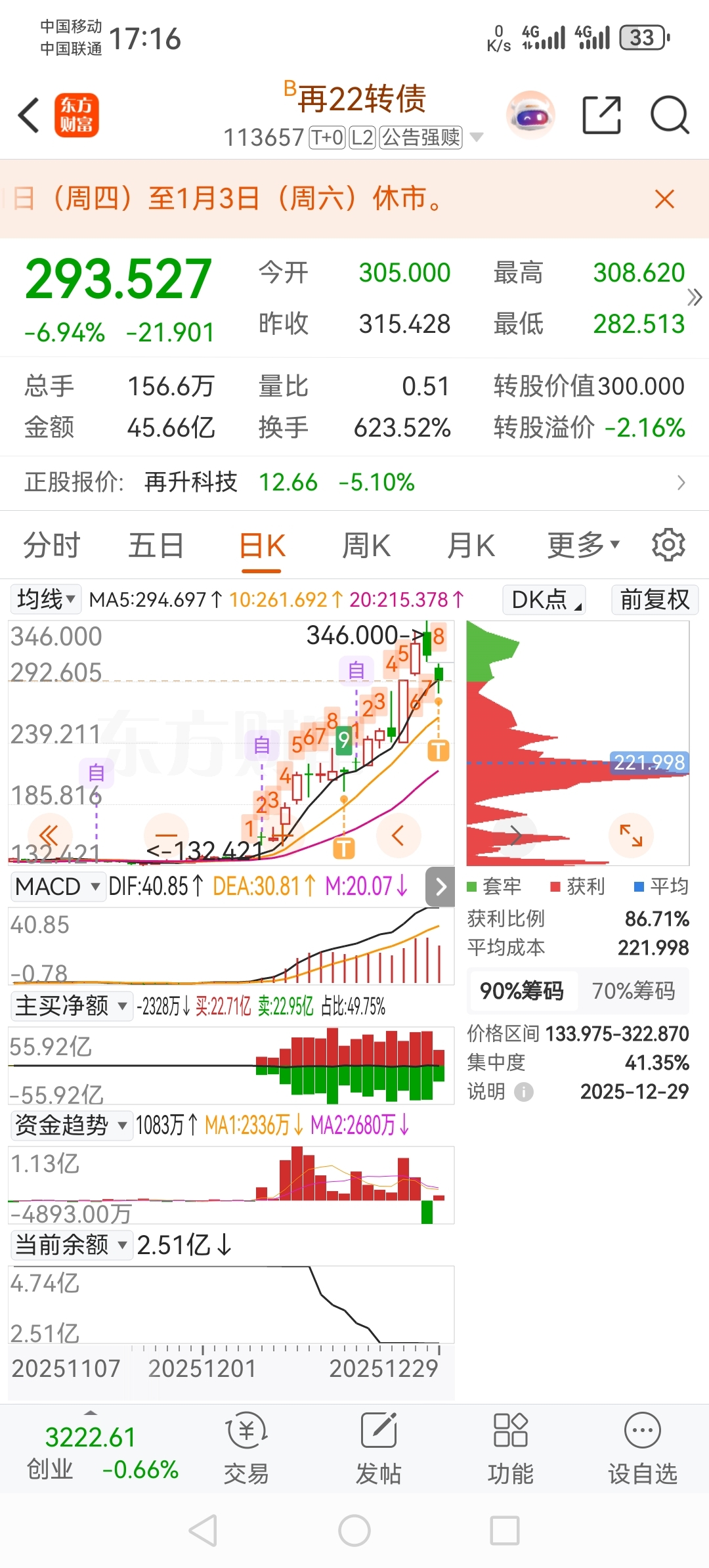 $再升科技(SH603601)$ 2.5亿不知今晚会转多少来正股
