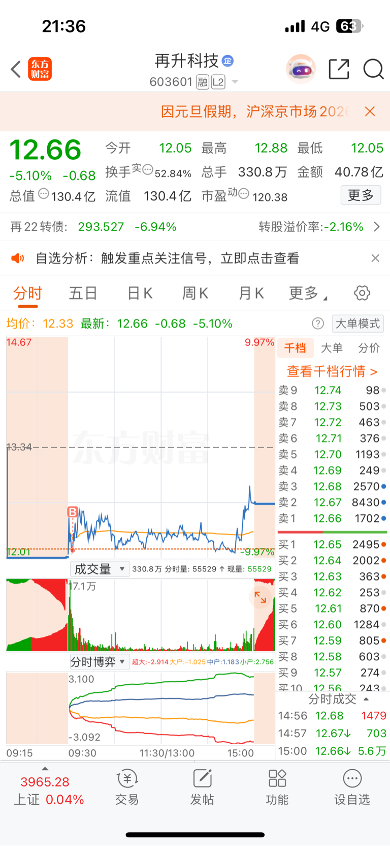 $再升科技(SH603601)$ 明天在红3-5震荡就行我不贪 礼拜三可以深水开我发工资加仓一下