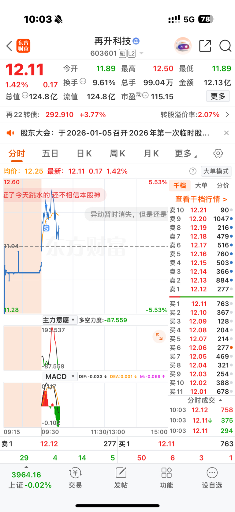 $再升科技(SH603601)$ 今天操作结束,水下或者尾盘接回
