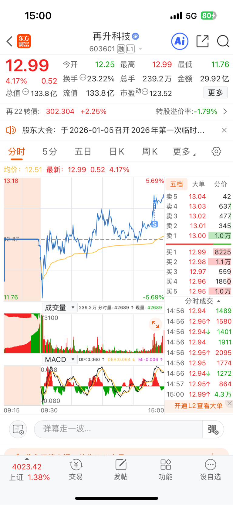 $再升科技(SH603601)$ 瞎搞,怕明天控制不住异动,换仓西部材料了