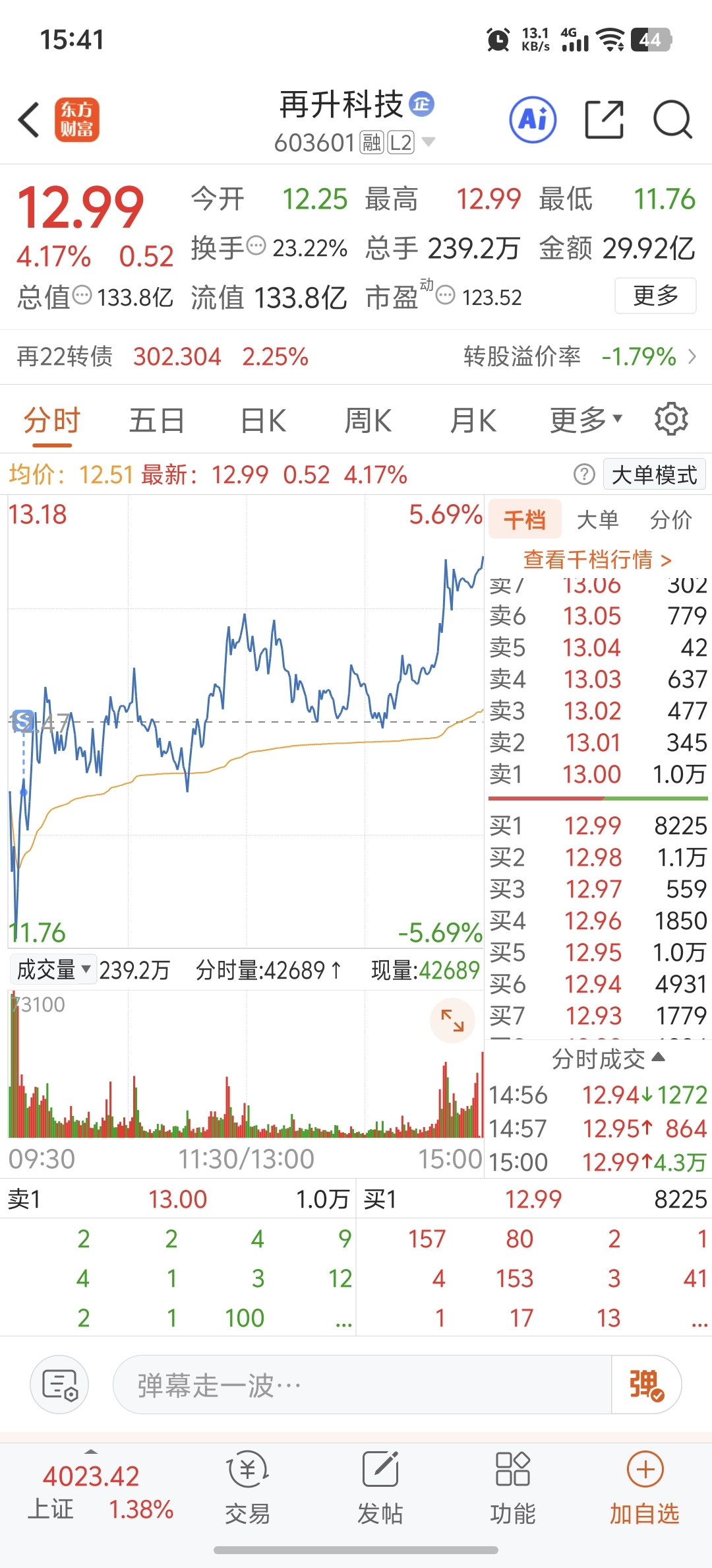 $再升科技(SH603601)$ 最近这个操作有点呆了,还是得多思考一下