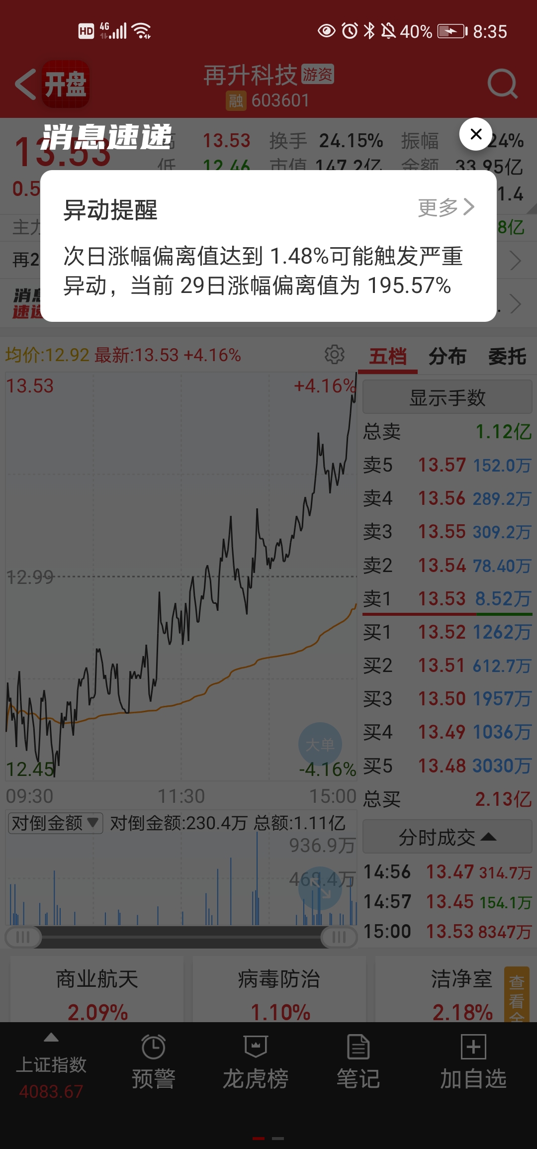$再升科技(SH603601)$ 明天要么送进异动吧
