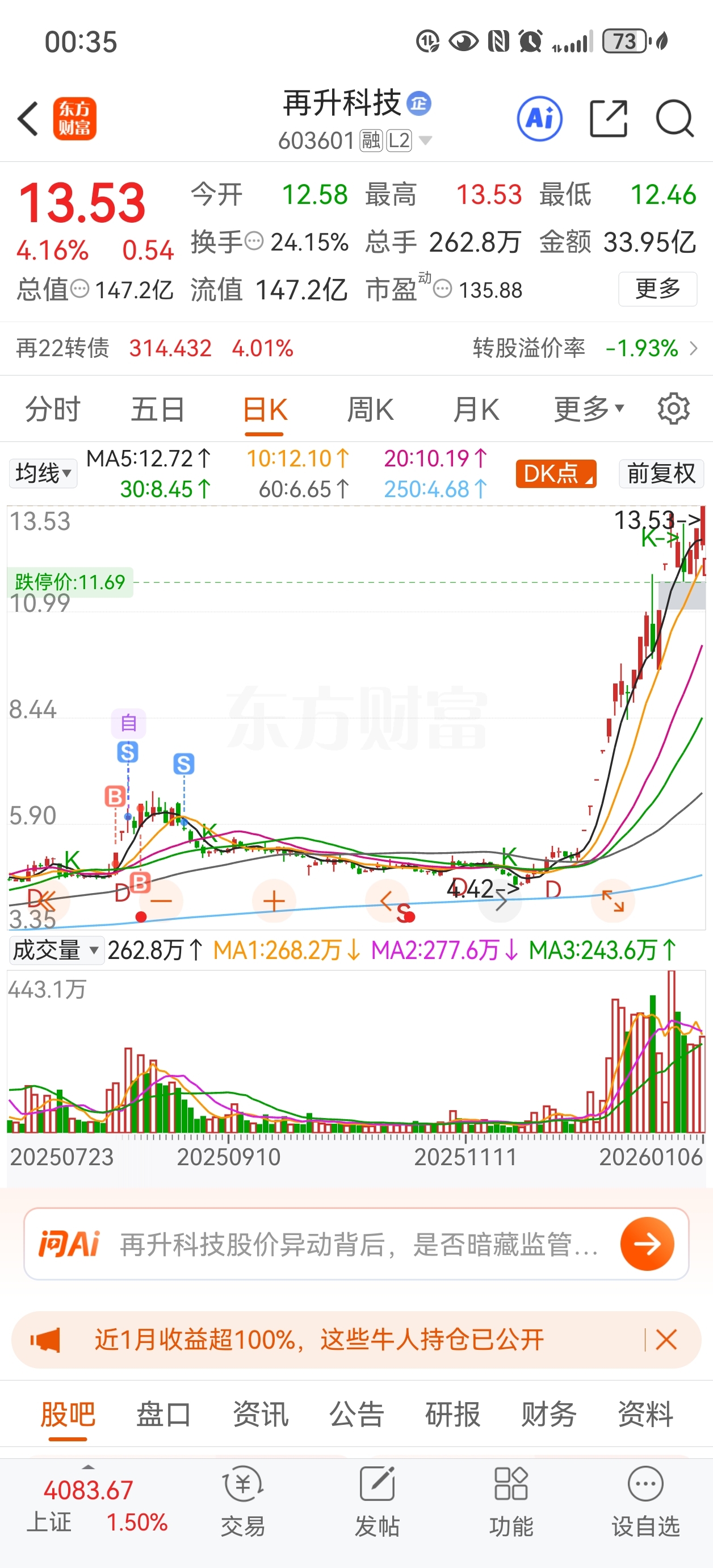 $再升科技(SH603601)$ 谁有我亏啊,等不上,了卖了,少吃个翻本股