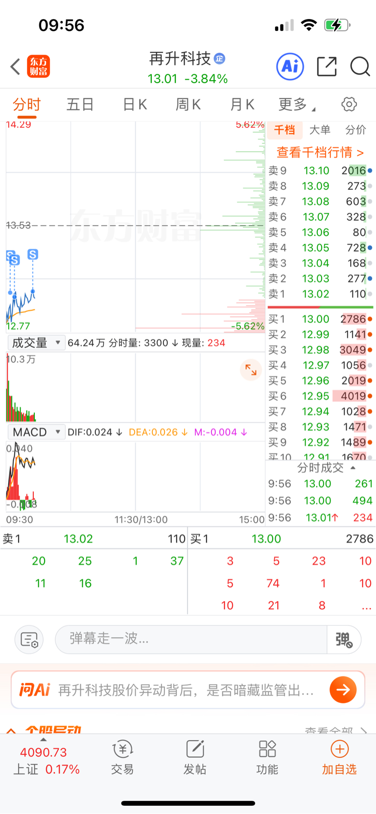 $再升科技(SH603601)$ 昨天压异动可以理解,今天都不敢去挑战就是弱