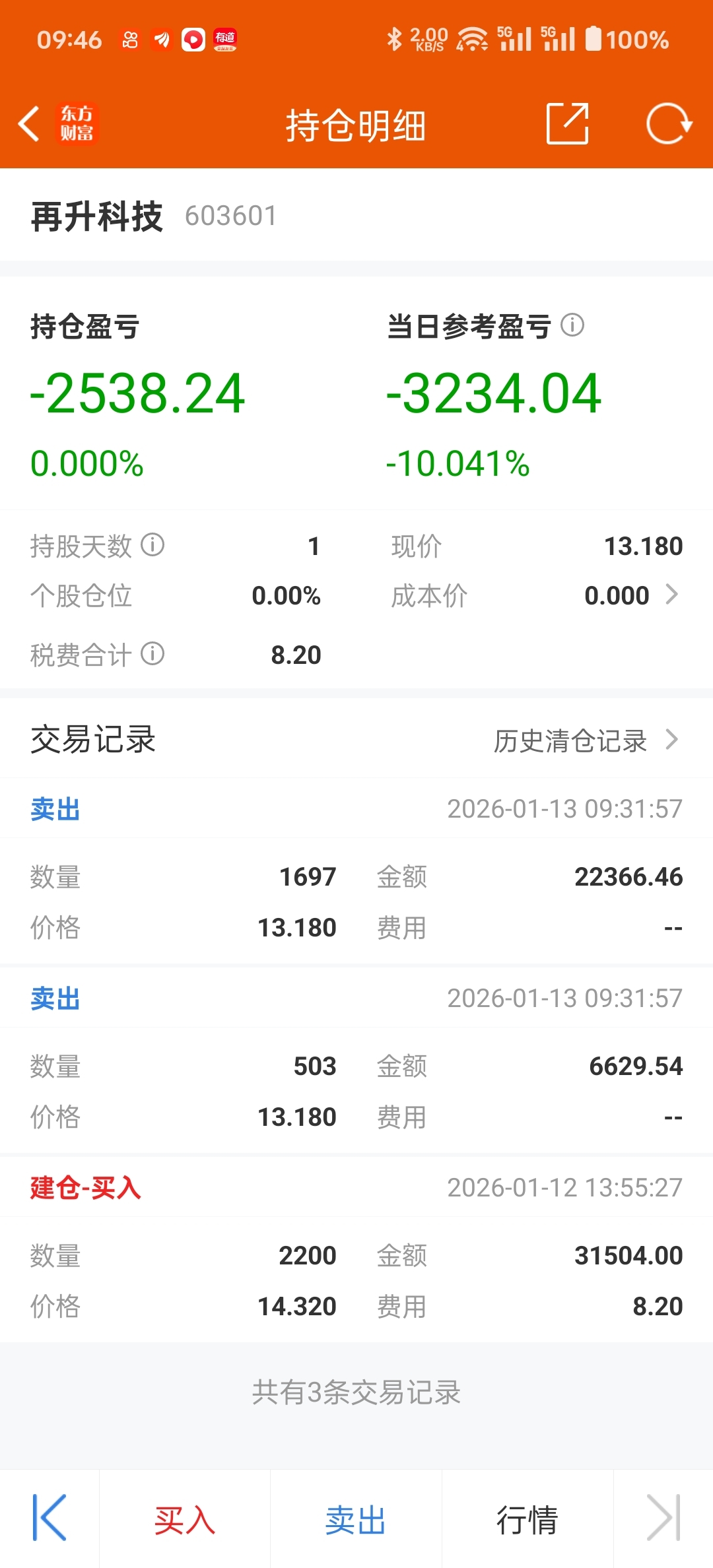 $再升科技(SH603601)$ 为什么要埋我,一天亏完
