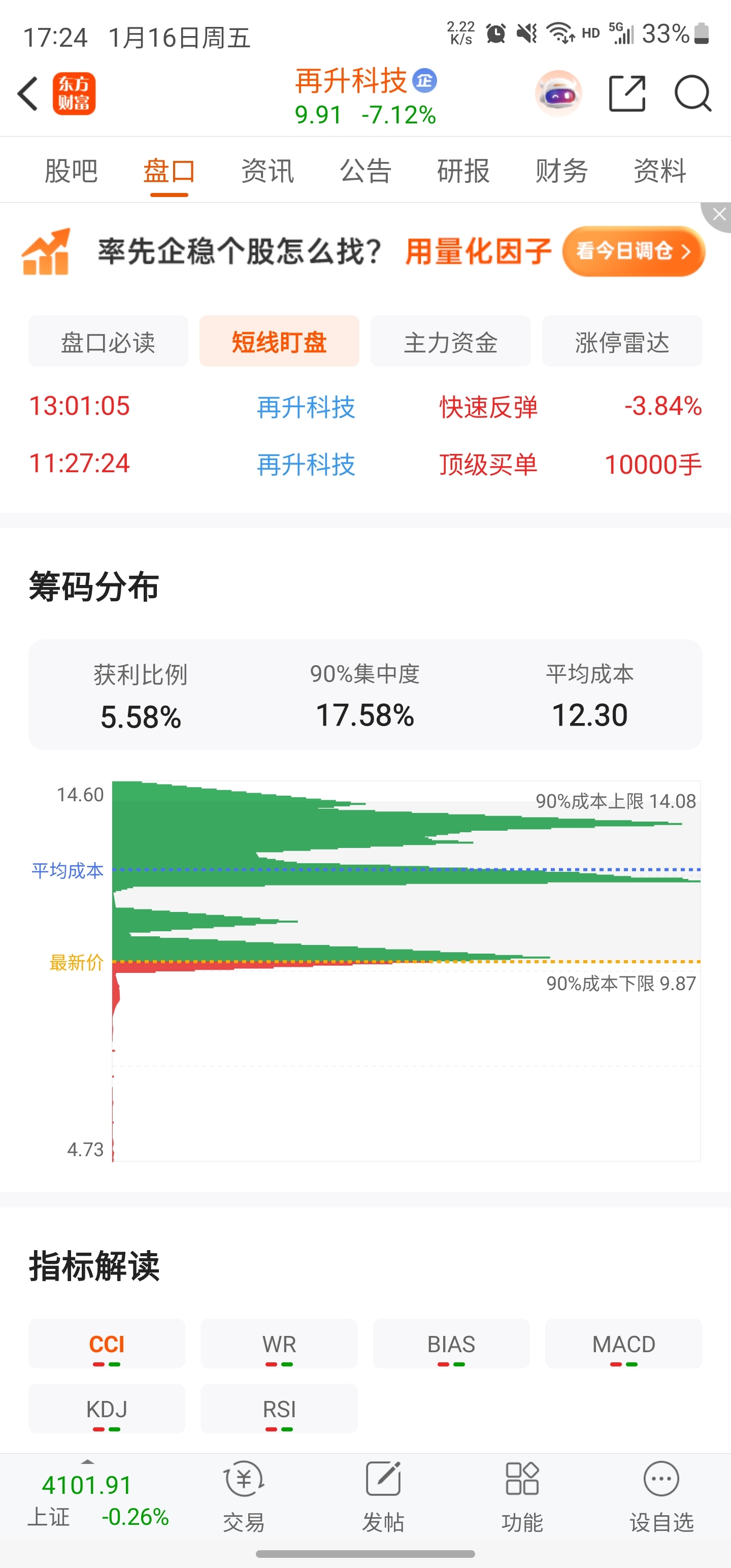 $再升科技(SH603601)$ 天天跳空低开!资金要有走的心很坚决!基本前面的都跑完了,那盈利的5%估计是今天抄底的吧!