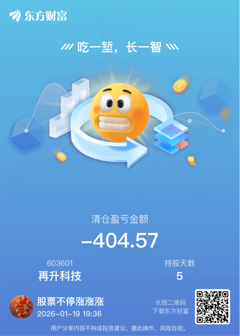 $再升科技(SH603601)$ 今天把顺灏和再升都跑了,别人吃肉我挨打,再升亏的一塌糊涂,再也不追高了,兄弟们谁有我惨,求安慰