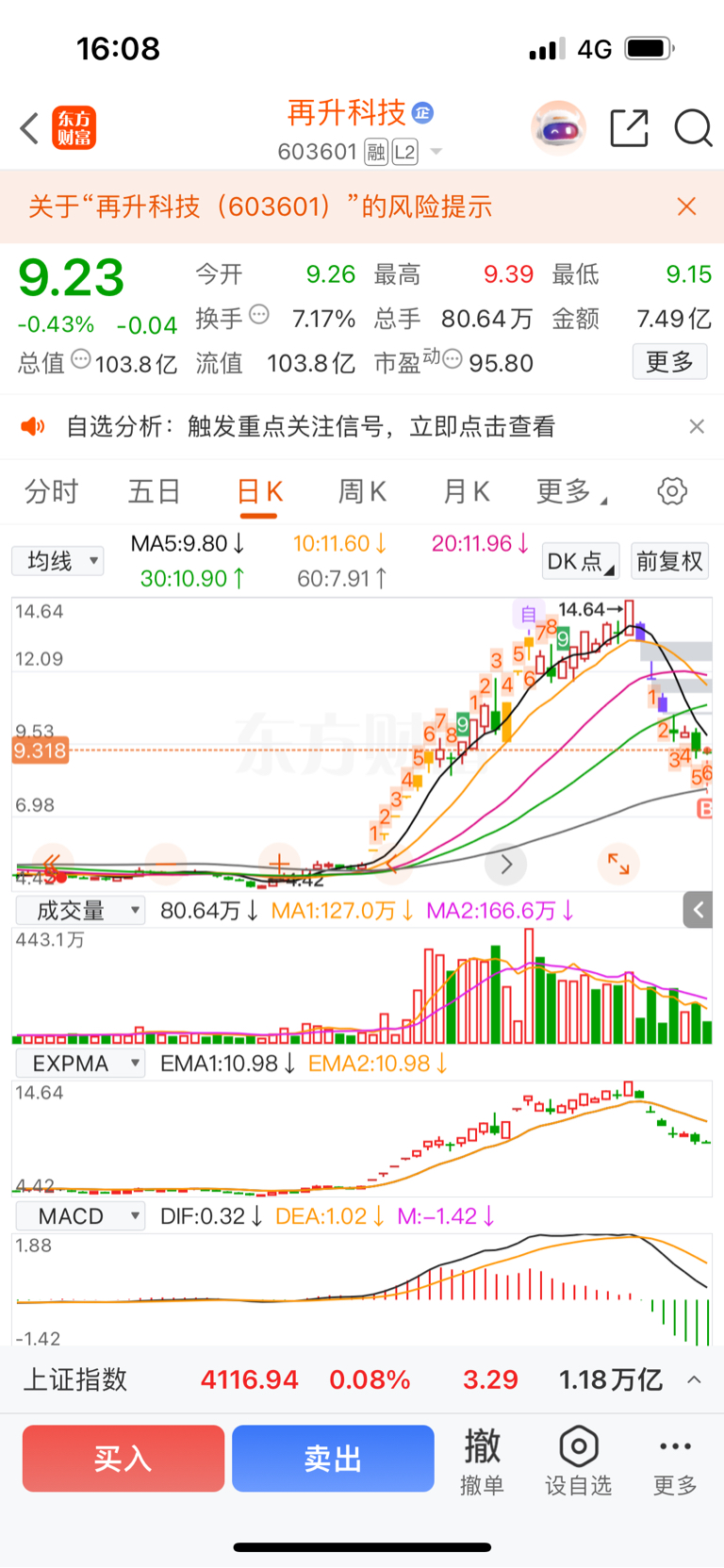 $再升科技(SH603601)$ 明天开始企稳上涨