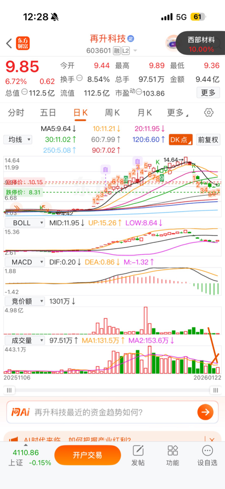 $再升科技(SH603601)$ 研究下昨天的成交量就知道该如何操作了