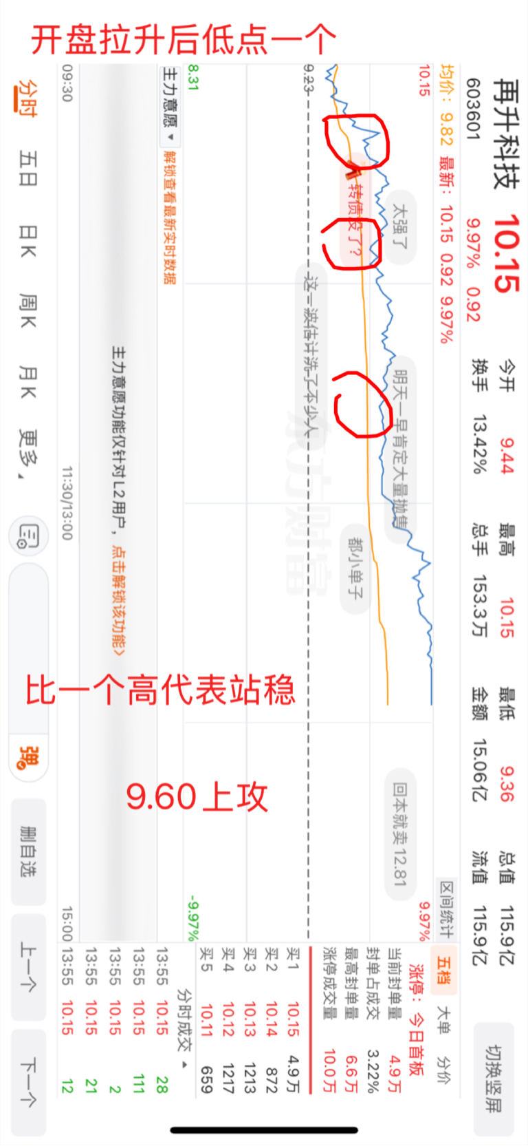 $再升科技(SH603601)$ 和前两天复盘分析一样,果然站稳9.60就上攻,今天放量涨停,封盘越来越多,不错