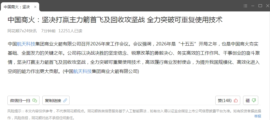 $再升科技(SH603601)$ 航天要继续起飞
