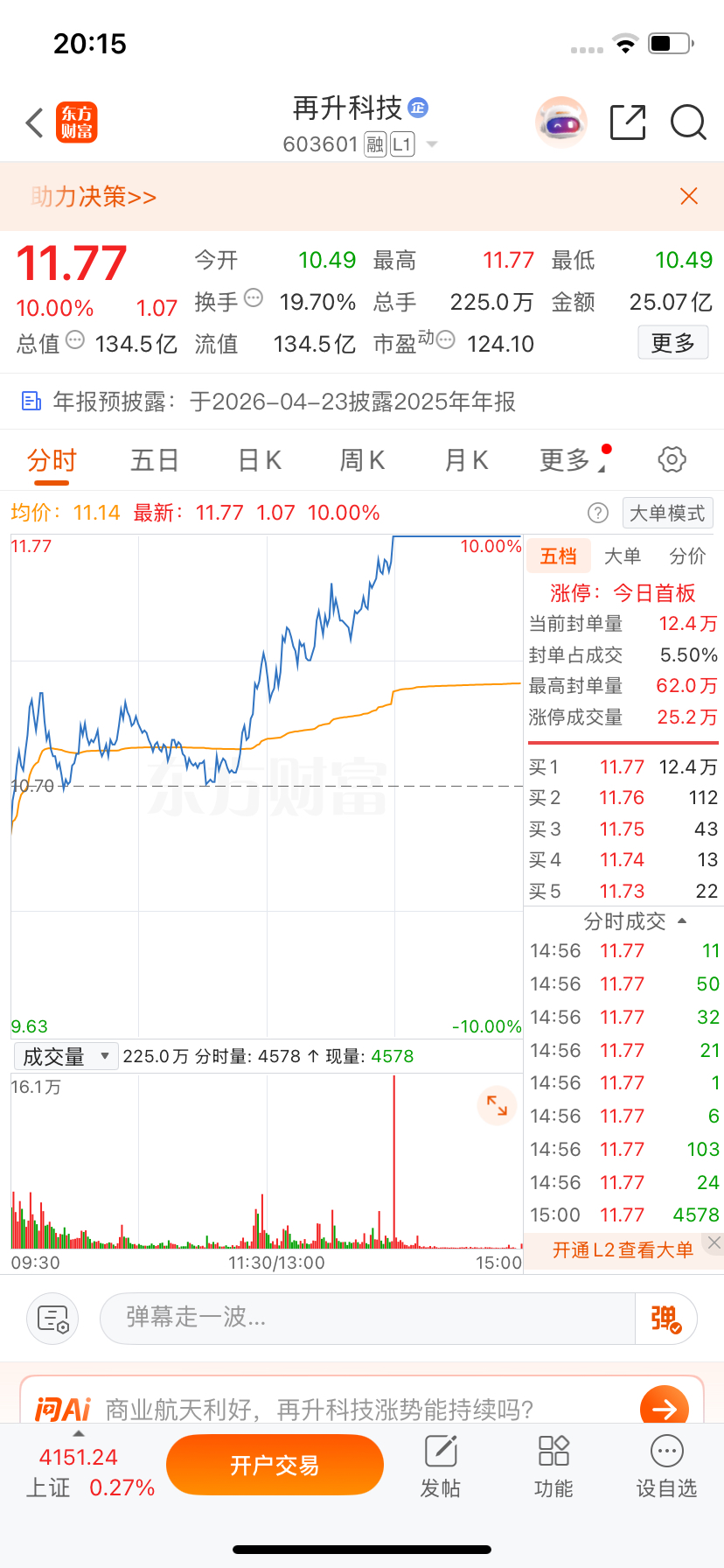 今天开盘低开符合预期(昨日涨停被砸),开盘后瞬间被拉起(和西部材料同步)并围绕均线震荡(此时西部材料要比再生科技强很多),大概在11点17分左右和西部材料分离突然拉高,午后更是逐波拉升,至2点封死涨停板(晚了点)且再无开板(抛压不大,主力未大幅度撤单),而西部是直到2点40分左右才开始拉了一个尾盘。